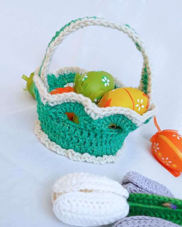 Vnesite toplino ročnega dela v svoje velikonočne praznike z unikatno ročno kvačkano velikonočno košarico. Vsaka košarica je skrbno izdelana z ljubeznijo, kar ji daje poseben, domač pridih.